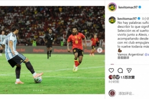 凯文·麦卡利斯特社媒晒出比赛照片,配文:“此时此刻的感受难以言表,为国效力是我最大的梦想,能与亚历克西斯(麦卡利斯特)共同经历这一切,还有家人自始至终的相伴,俱乐部也一直支持着我,这让首秀变得更加激动人心。”