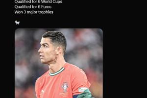 ESPN对比有无C罗的葡萄牙队大赛战绩↓