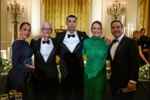 图中C罗、乔治娜与苹果公司CEO库克等人合影。